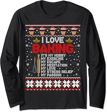 Amazon Com I Love Baking Gift Mom Christmas Cookies Cakes Ugly Sweater Long Sleeve T Shirt Clothing Shoes Jewelry